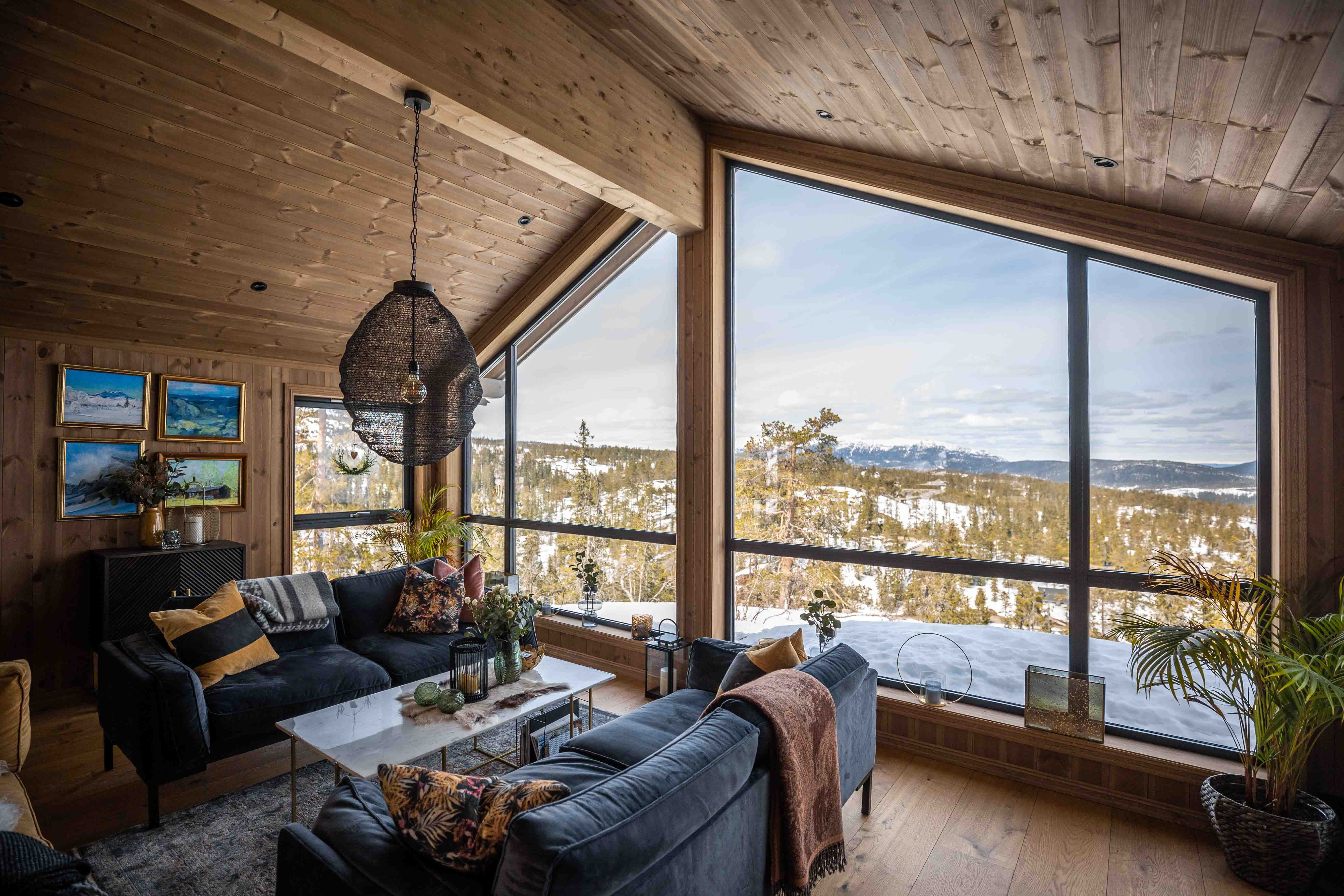 Omramminger, på hytter i Moderne stil leveres vinduer og ytterdører inntrukket i vegg.